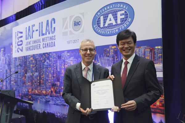 近日,在國際認(rèn)可論壇(IAF)和國際實(shí)驗(yàn)室認(rèn)可合作組織(ILAC)2017年聯(lián)合年會上,中國合格評定國家認(rèn)可委員會(CNAS)秘書長肖建華代表CNAS與IAF簽署了信息安全管理體系多邊互認(rèn)協(xié)議,標(biāo)志著我國的信息安全管理體系認(rèn)證認(rèn)可制度正式加入IAF多邊互認(rèn)體系。